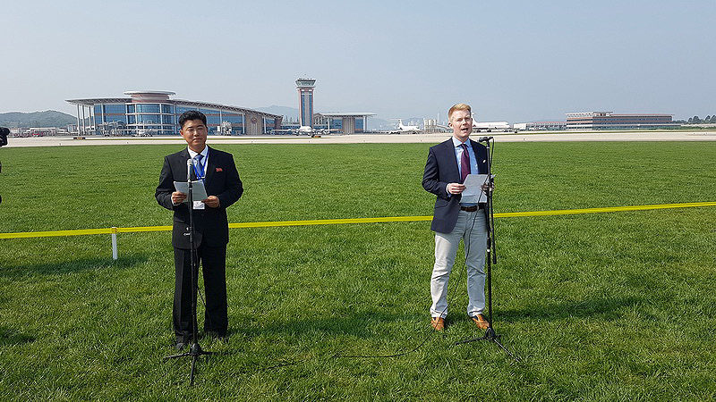 The opening ceremony speeches – translated into English and Korean – toasted peace and international trust and cooperation thanks to the bonds of aviation, but even as David Thompson-Rowlands spoke to the massed thousands, Air Koryo’s 1969-build Ilyushin Il-18 was starting engines over on the flight line.