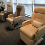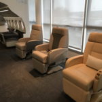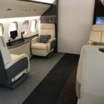 After landing, I visited The Dassault Aviation showroom which offers full customization of the airplane for any potential owner. You can try out many different layouts including cabin seats, entertainment system, carpet, flooring, paint and many finer details like upholstery and table wares.