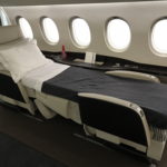 This is what the interior of my Falcon 8X flight looked like. It was configured with 14 seats across 3 section of the cabin; it can also be converted into 6 fully flat beds. With over 30 possible layouts, this is the industry’s most flexible cabin. Noise and cabin altitude are low, air quality is high.