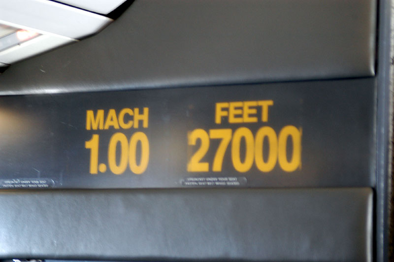 The fastest speed we did was 1,390 mph (Concorde cruising speed is 1,350 mph)