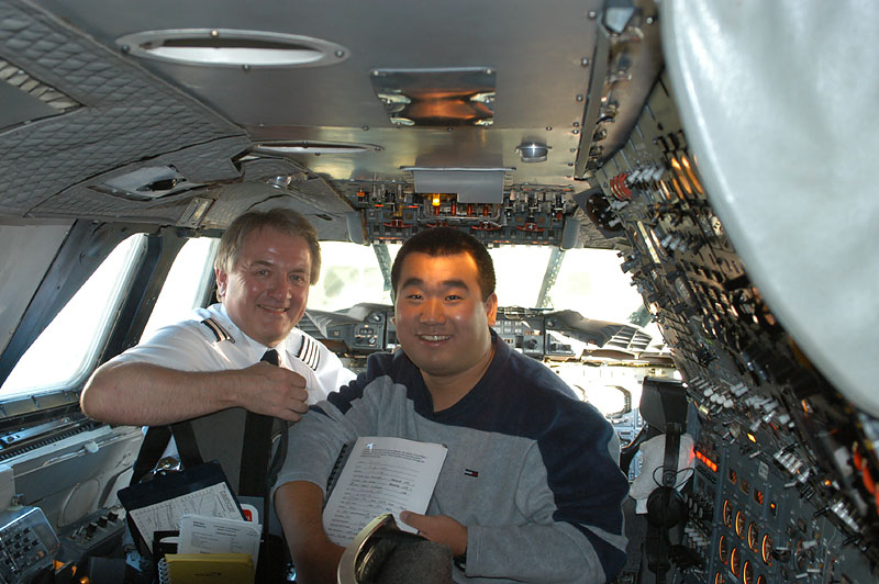 Captain Mike Bannister flew The BA002 that day; he is The Chief BA Concorde Pilot and he is also The Chief BA Pilot for short haul flights. This really was a huge bonus to my flight, since the cabin crew told me he does not fly much. He is very famous and constantly appears on TV acting as BA’s Concorde Spokesperson. He was a key force behind the return to service of The Concorde, after the tragic accident in Paris. I have a very pleasant 5 minute chat with Captain Bannister; he was kind enough to sign the menu, fill in my logbook and also he showed me around the cockpit.