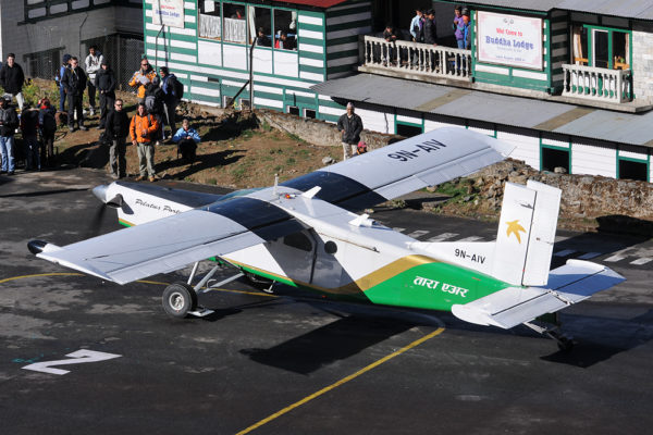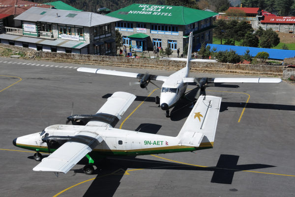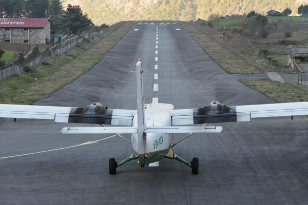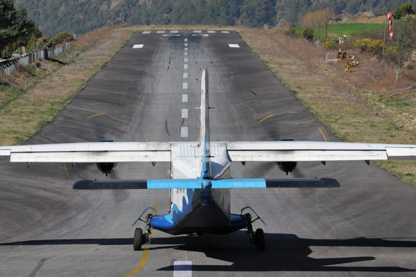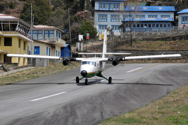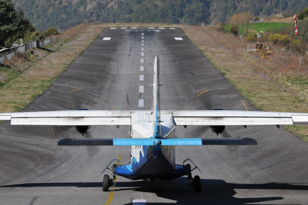 For aircraft enthusiasts, there are many opportunities to view aircraft takeoff and landing. The airfield is simply surrounded by the town. One interesting fact to note is there are absolute no cars in Lukla! One has to walk to everywhere in Lukla! A large crowd of Sherpa and guides gather at the airport every morning to offer their assistance to carry baggage for the arriving tourist. The view from above runway 24 is probably the best for all runway action. This location can be reached with a gentle 3 minutes of climbing from the left of the terminal. Another excellent viewing spot is in Hostel la villa Sherpani which located adjacent to the downward sloping runway. You can view arriving and departing aircraft just a few metres from the end of the short runway there. Although security has its presence, they are generally very friendly towards visitor, as most people from Nepal would. There are no reported problems of taking pictures of aircraft around.