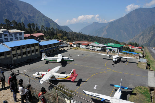 The airport is popular since Lukla is the place where most people start their climb of Mount Everest. There are a dozen daily flights between Lukla and Kathmandu during daylight hours with good weather. Although the flying distance is short, rain commonly occurs in Lukla while the sun is shining brightly in Kathmandu. High winds, cloud cover and changing visibility often mean flights can be delayed or the airport closed completely.
