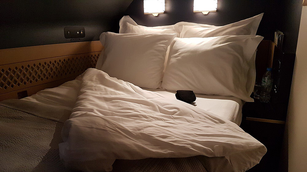 The double size bed in the bedroom of The Residence is a real bed, not one of those converted chair-bed in other First Class. My bed was turned down already after the dessert and it is definitely the most comfortable bed in the sky!