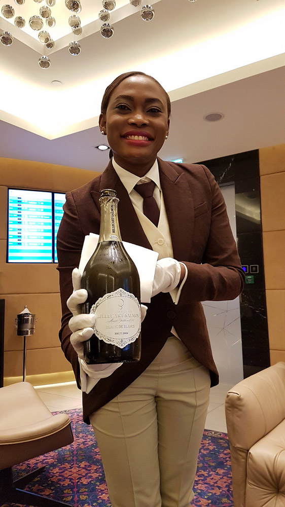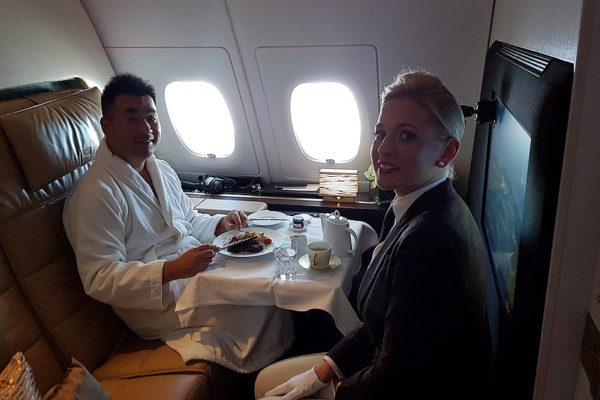 Cocktail, Caviar, Fine Dining, Shave, Massage, Cigar and Cognac before flight. The exclusive own lounge of yours is truly a sanctuary! It is like a hotel. There's also a private bathroom with shower facilities!