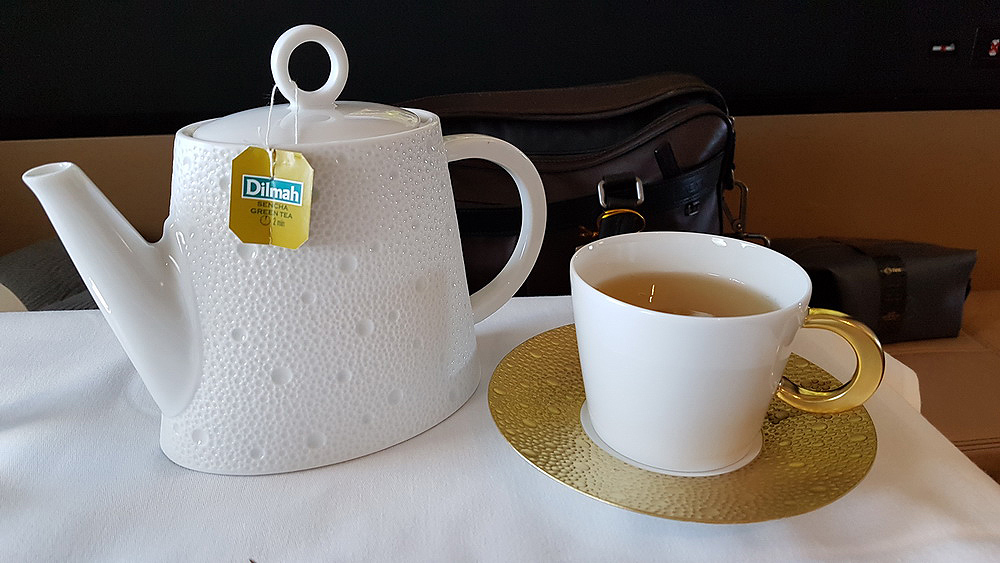 I have a wonderful rest and asked Leanne to wake me up about 2 hours before landing. I took a shower in my own private bathroom inside The Residence. To my surprise, a very soft bathrobe with my initial is hanged and ready to use!