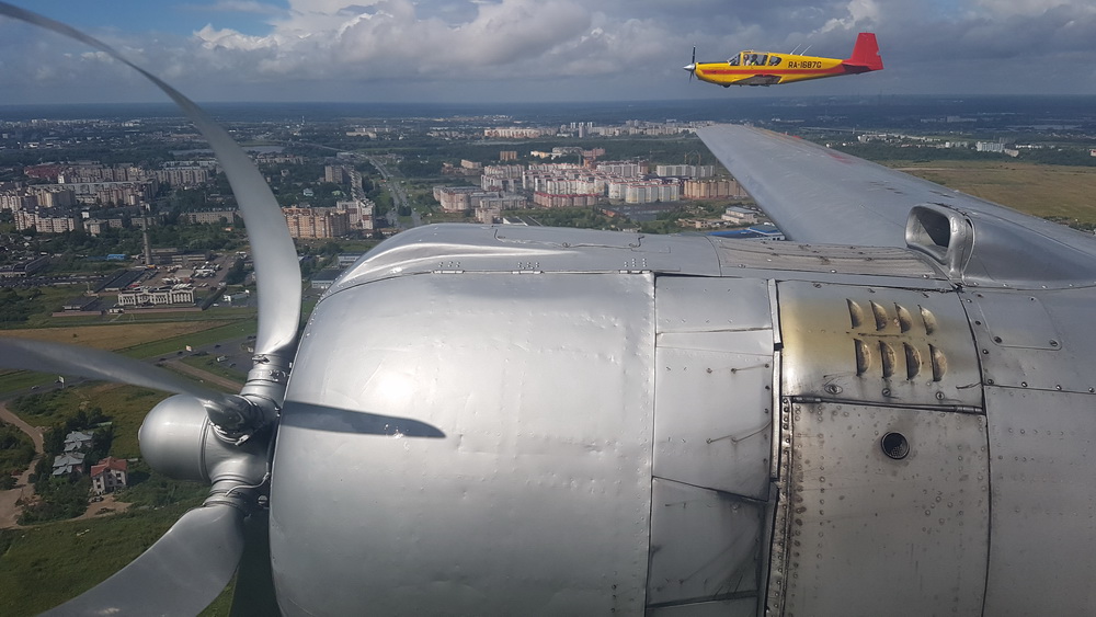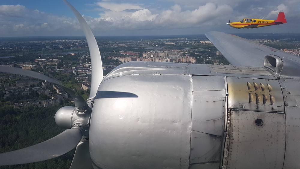 The IL-14 performed a total of 4 flights. An An-2 and Romanian made Aerobatic plane IAR-826 also flew close formation together with the IL-14. Our trip participants swaped planes after each flight so we could have a taste of different planes.