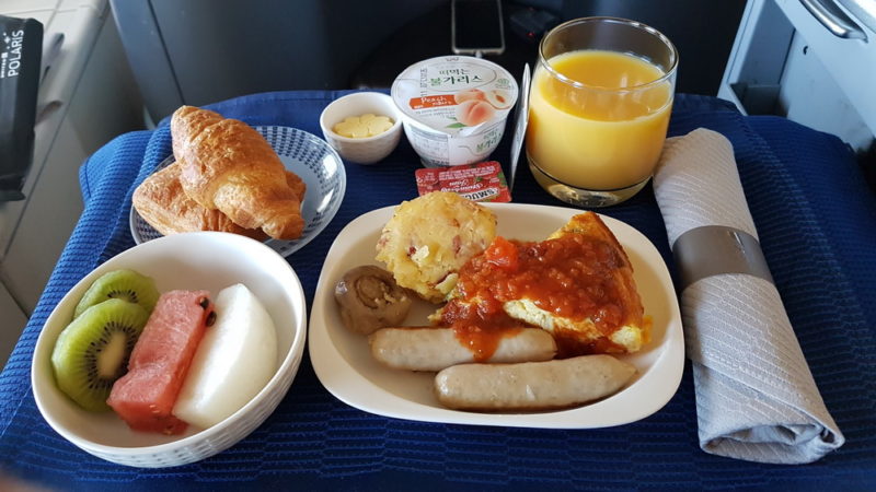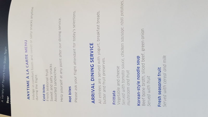 Breakfast was served 1.5 hours prior to landing in San Francisco. There were choices of Korean Noodles, fruit plate or egg frittata.