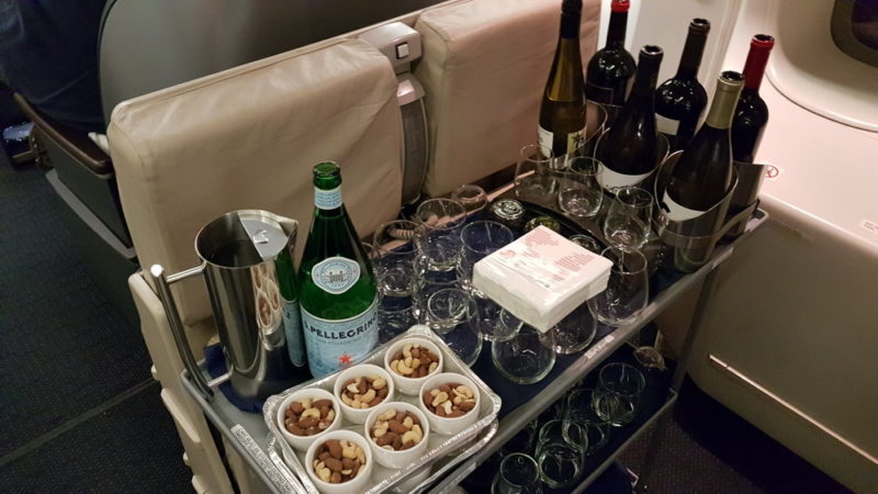 The crew handed out Pyjamas in First and Business Class after the meal and I quickly changed in the bathroom.